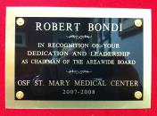 OSF St. Mary Medical Center dedication plaque for being Chairman of the Community Board from 2007 through 2009. |