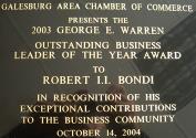 George E. Warren Award presented by the Galesburg Chamber of Commerce in 2003. |