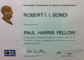 Rotary Foundation of Rotary Internationals Paul Harris Fellow Award for philanthropic gifting. |