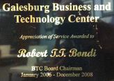 Galesburg Business and Technology Center dedication plaque for being Chairman of the Board from 2006 through 2008. |